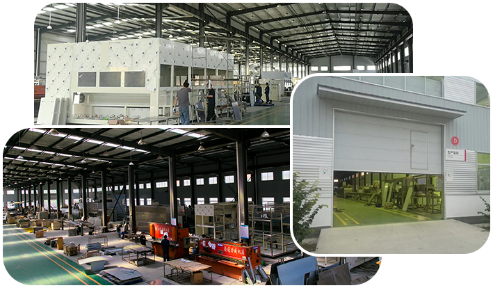 玻璃合片時平壓機前后箱機械手杠桿式托料,(機械式硬限位+活動板吸盤吸附)確保自動合片時玻璃不易錯位。清洗箱 風干箱 風刀等全不銹鋼制作,外形美觀大方,不易銹蝕。